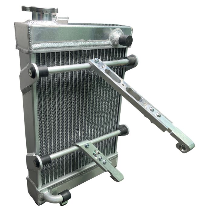 ALUMINIUM BILLET RADIATOR COMPLETE WITH BILLET ALUMINIUM RADIATOR BRACKETS.